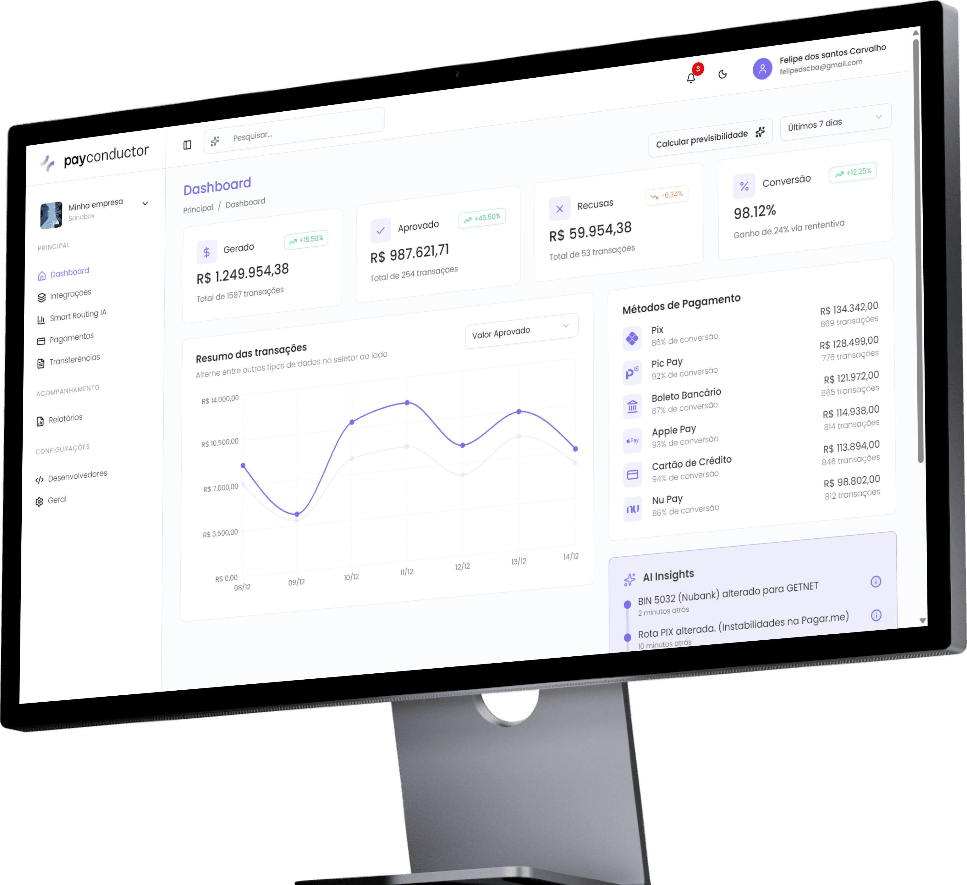 PayConductor connects your company to multiple payment providers and uses AI to choose, in real-time, the best path for each payment.